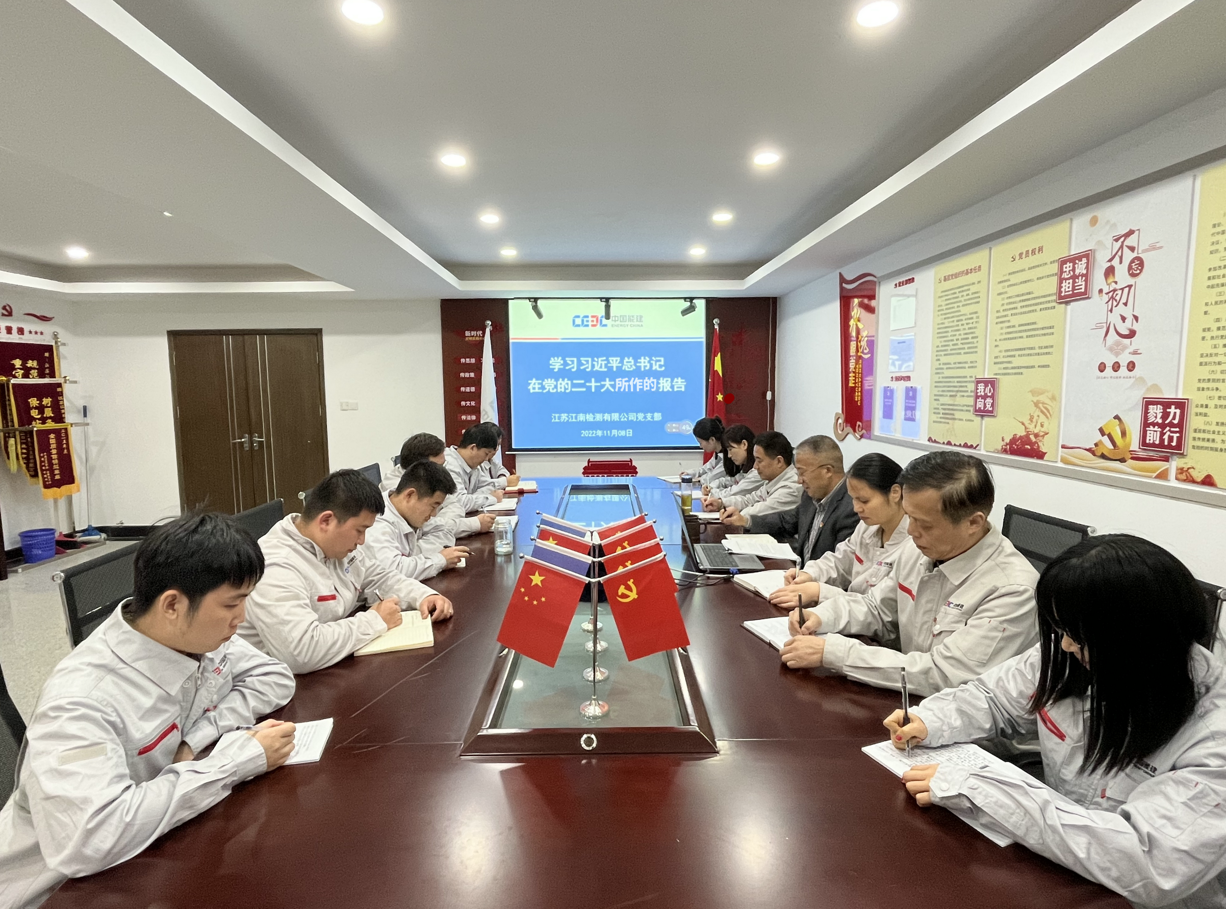 繼10月18日與焊接培訓(技術)中心聯學黨的二十大精神后,江蘇電建一公司所屬江南檢測組織專題黨課,由黨支部書記在11月8日領學,推動黨的二十大精神進班組。