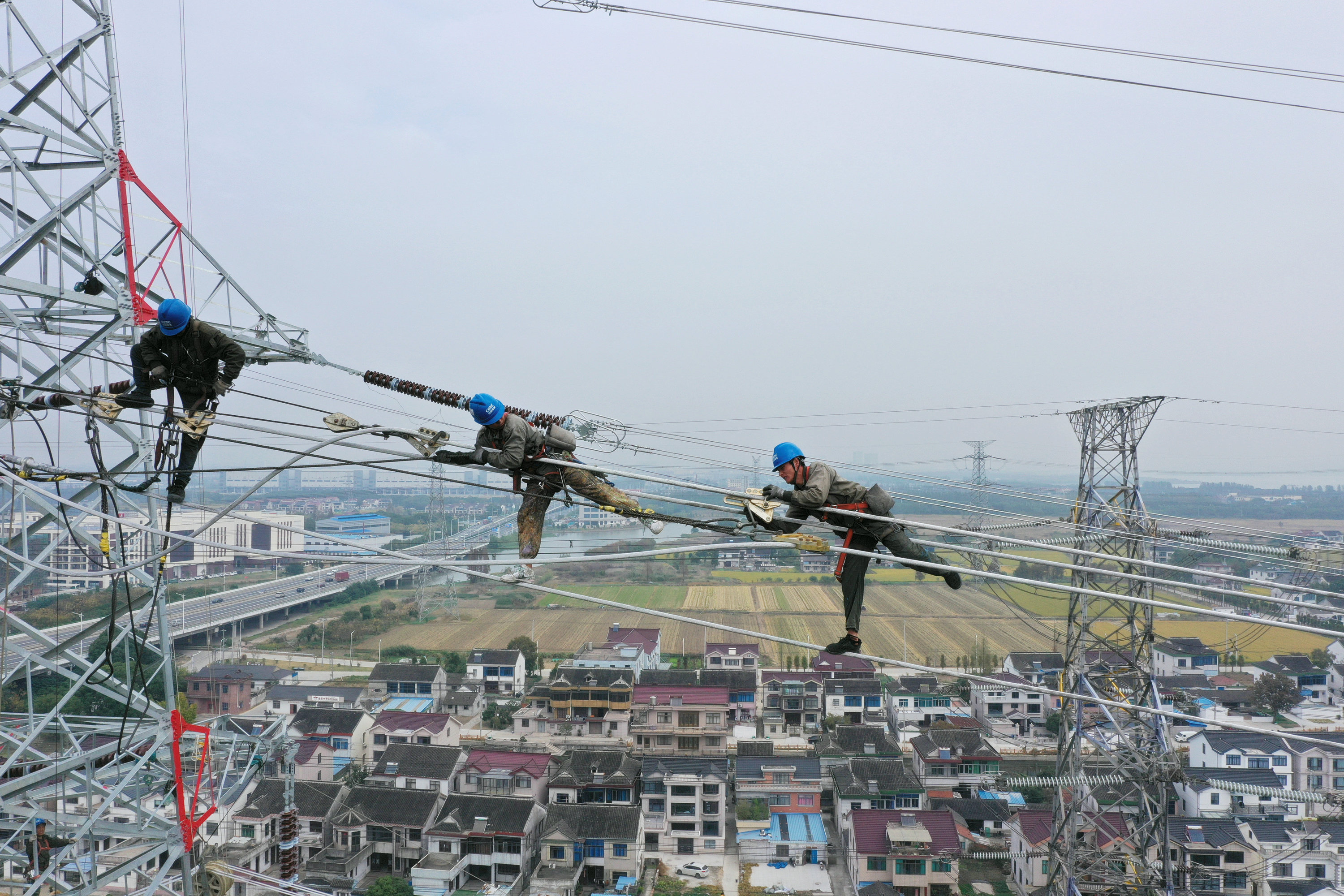 白鶴灘—江蘇±800千伏特高壓直流受端配套500千伏送出工程Ⅲ標段施工場景。陳康攝